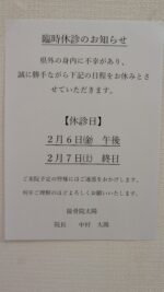 2月20日(金)も午前中は通常通り受付しますが、午後は16時から19時までの受付となります🙏